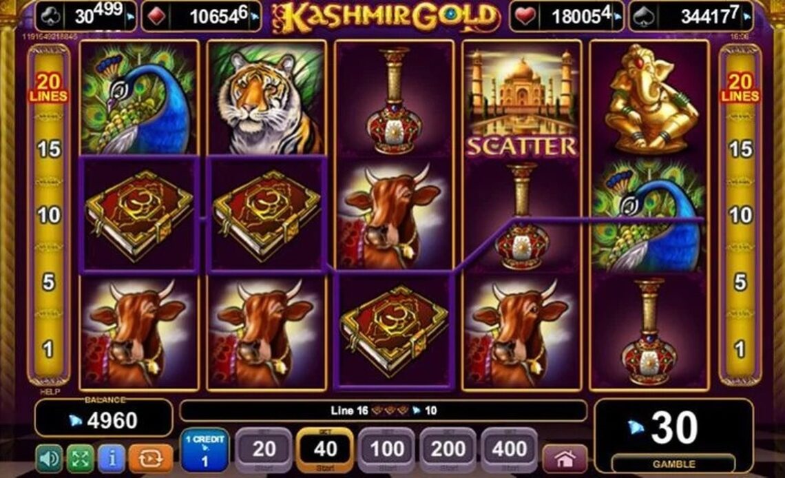Het thema van Kashmir Gold is gebaseerd op de rijke Indiase cultuur, inclusief tempels en mystieke symbolen.
