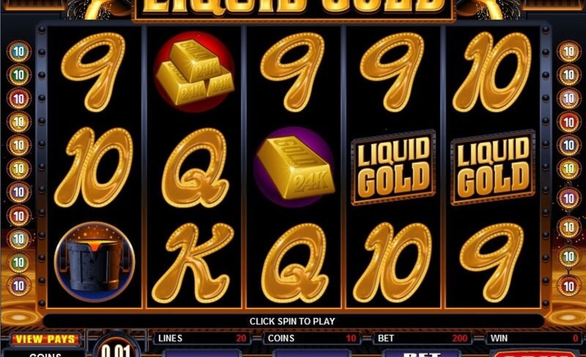 Liquid Gold heeft een gouden thema, waarbij de symbolen en achtergrond draaien om de schoonheid van goud.